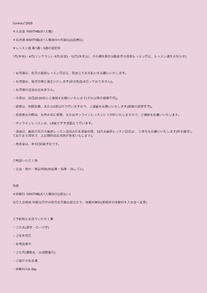 2026年1月より、レッスン回数を月4回から月3回へ、改定させていただきます。